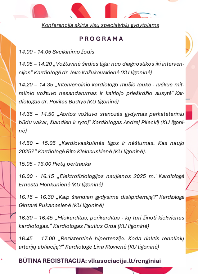 Mokslinė konferencija “Karštos 2025 m. Europos kardiologų draugijos metinio kongreso naujienos”